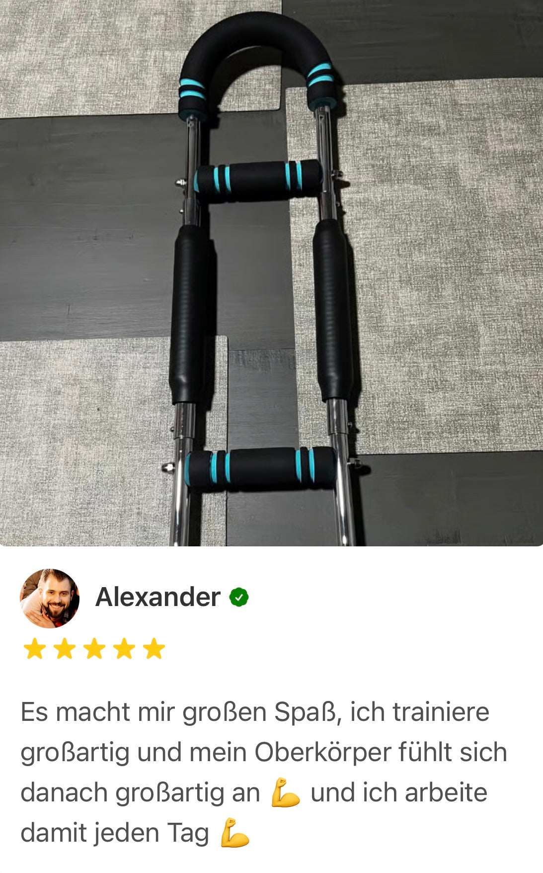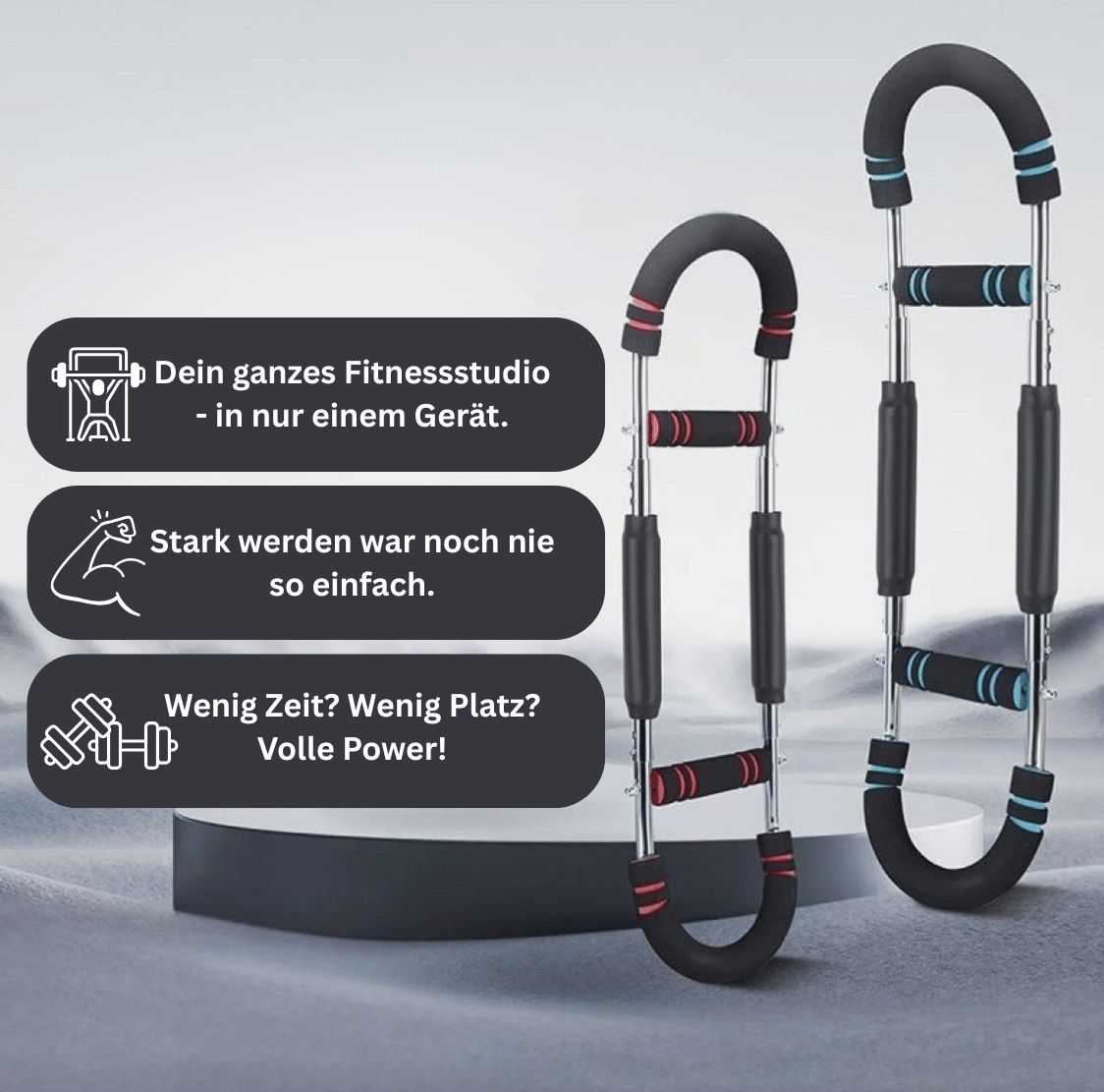 Ersetze mehrere Geräte mit nur einem Tool. Trainiere Brust, Rücken, Arme, Schultern und Beine – effizient und mit maximalem Pump.